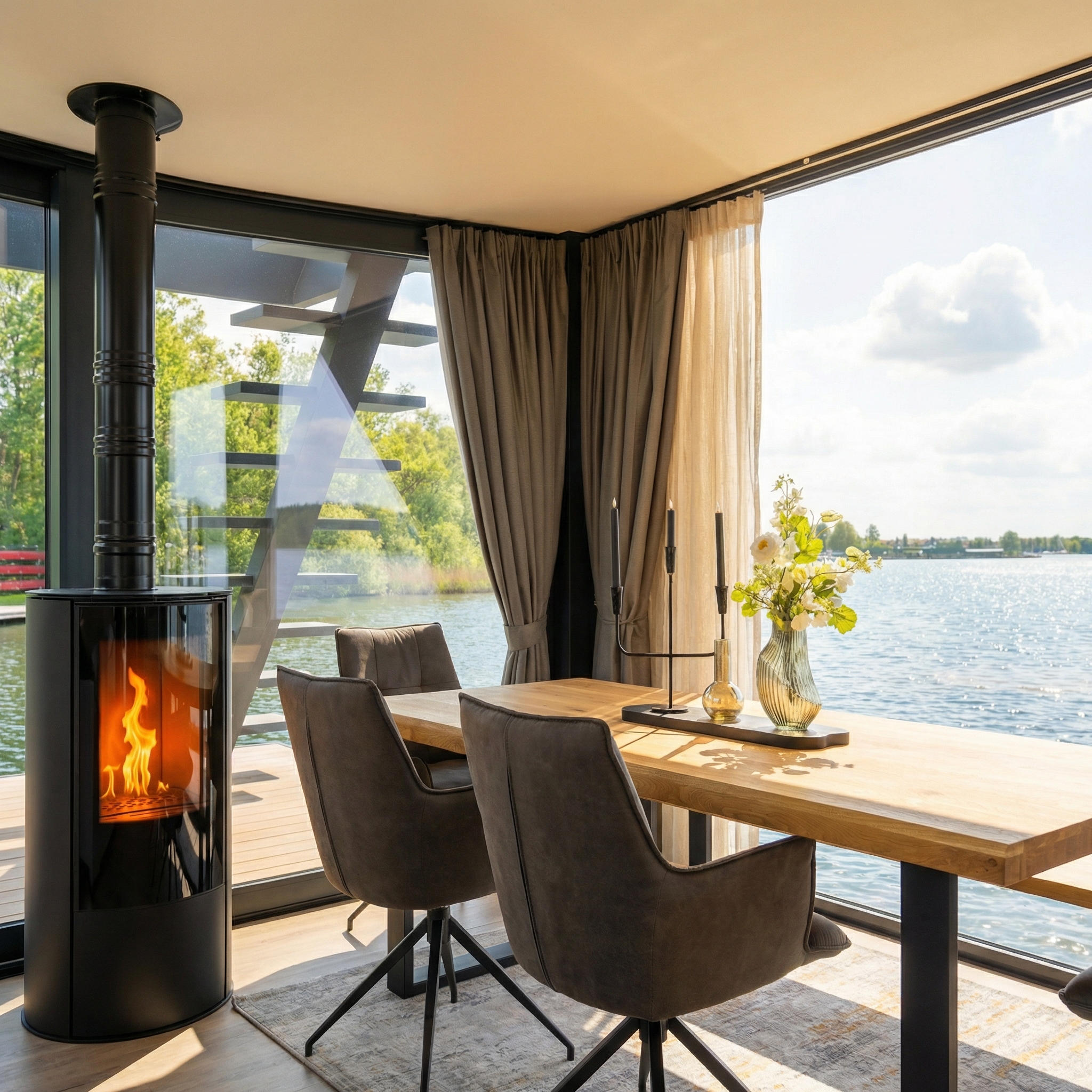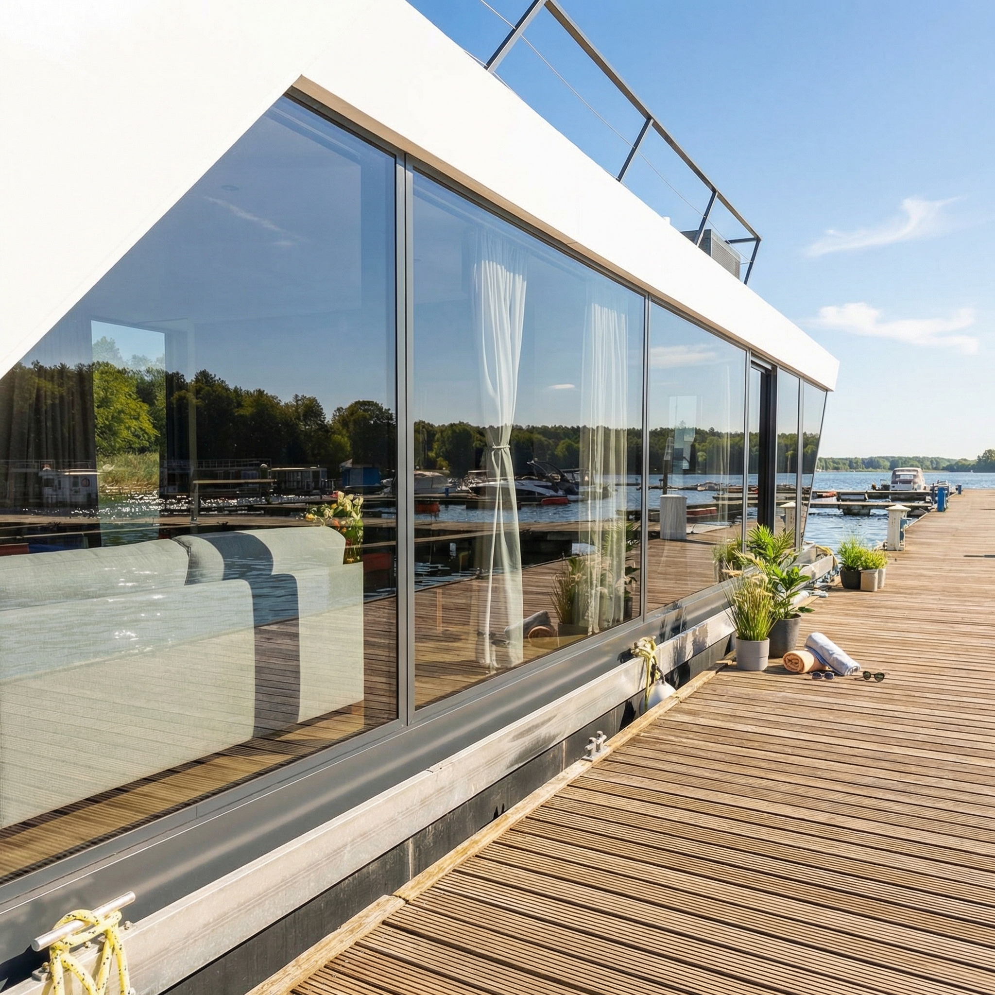 Ihre rundum 360° Panoramaverglasung ermöglicht einen atemberaubenden Blick auf die faszinierende Wasserlandschaft.