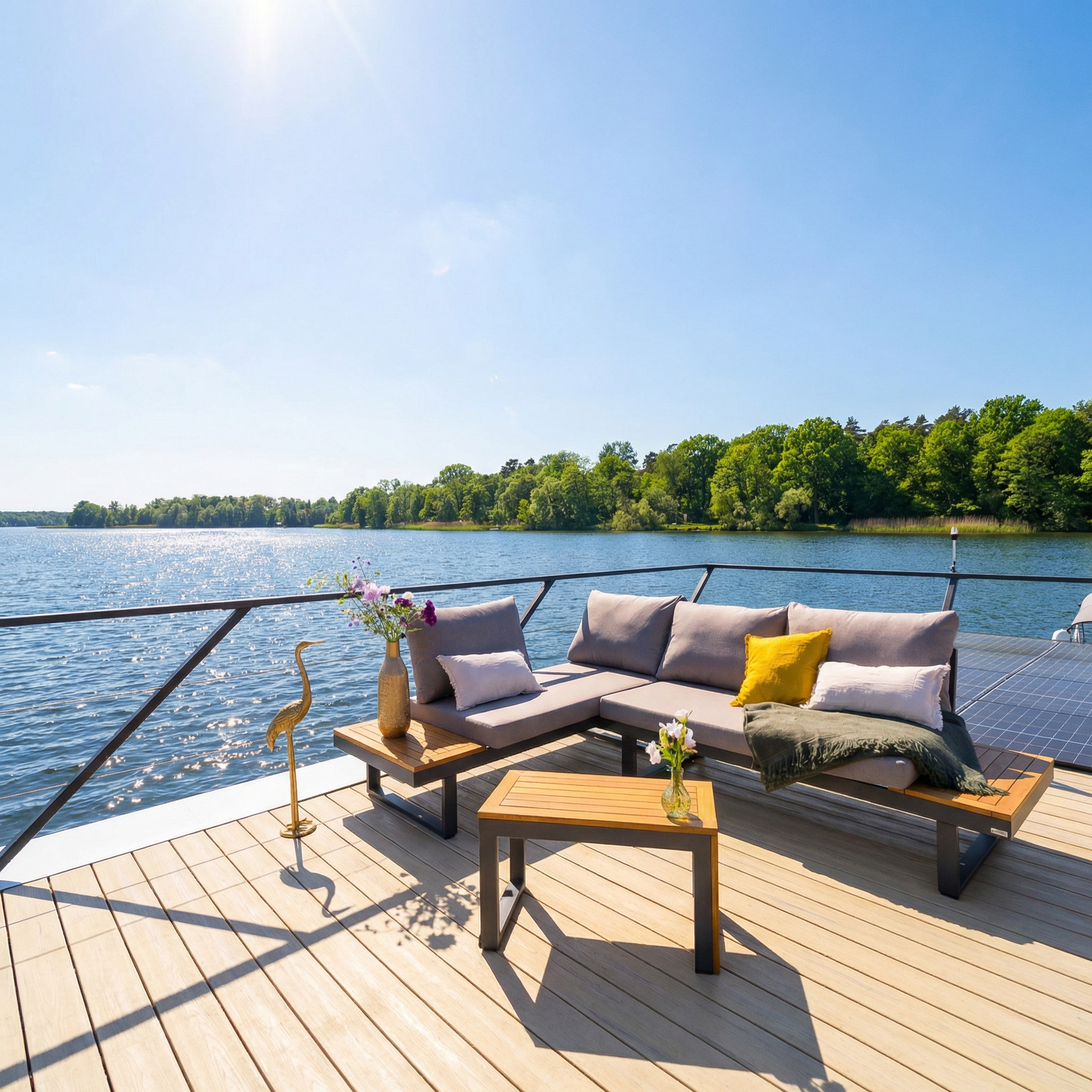 Für entspannte Stunden unter freiem Himmel lädt das Sonnendeck mit einer einladenden Outdoor-Lounge ein. Entdecken Sie Ihren persönlichen Traumurlaub auf dem Wasser.