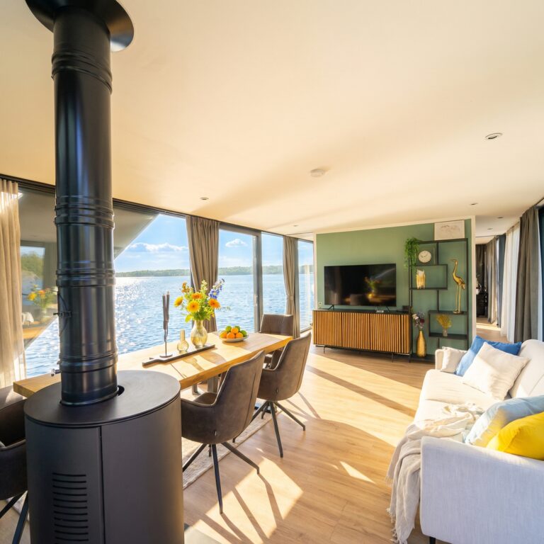 Das Hausboot verfügt über eine voll ausgestattete Küche, gemütliche Schlafzimmer und ein stilvolles Badezimmer. Mit ausreichend Platz für deine Familie oder Freunde bietet es eine einladende und komfortable Umgebung, um gemeinsam Zeit zu verbringen.